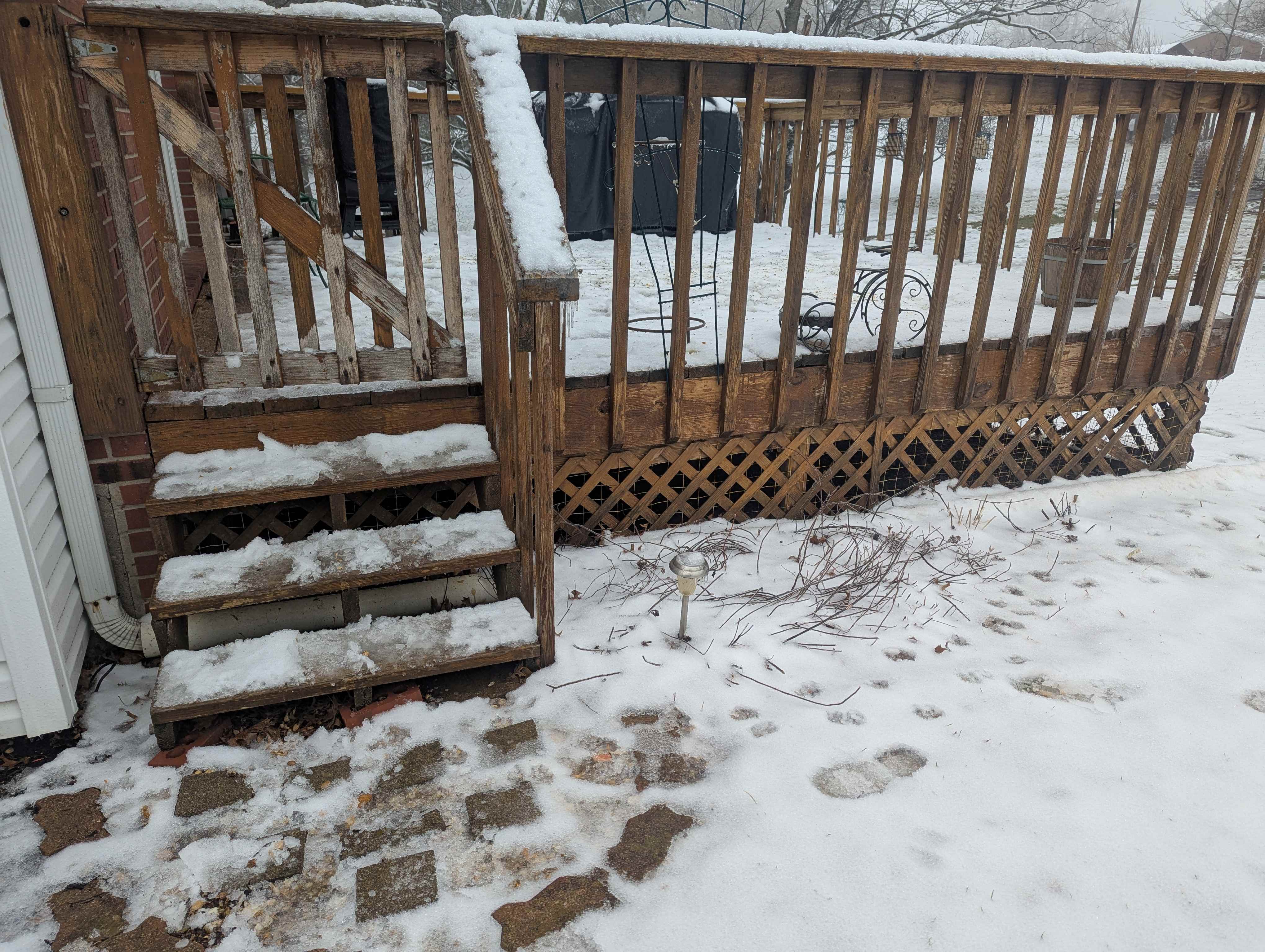 Renee and Joe Cooper New Albany, IN 2022 Repaired and replaced much of the framing and used Trex Clamshell decking with hidden fasteners and a stainless steel cable railing.